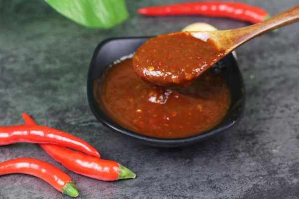 3、净锅上火,加熟花生油,投入泡红椒、泡野山椒泥和郫县豆瓣、豆豉泥,小火慢炒至出香出色,随即离火,晾凉后倒进调好的芝麻酱稀糊中,调入精盐、味精、鸡精、白糖,再放入香油、红油、碎花生仁,搅拌均匀后即成。