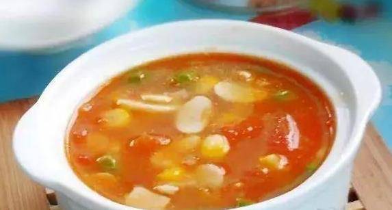 6、生粉加水拌匀,放入汤中,与酱汁一起搅拌均匀,拌匀即成糖醋菜炖玉米汤。