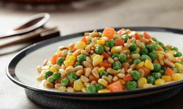 平底锅烧热,加入色拉油,加入玉米粒和毛豆粒翻炒。加少许水,待香气和水汽减少后,加盐和糖调味;