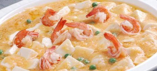 原料:豆腐500克,虾仁50克,虾籽1克,绍酒10克,精盐,味精3克,葱1克,姜5克,干淀粉3克,生粉3克蛋清1个,水淀粉1个,鸡精5克,熟猪油150克,300克(实际用量50克)