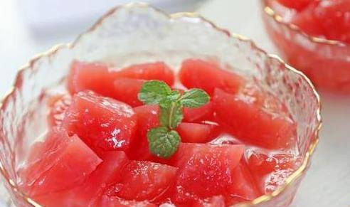 准备材料和香料:1200g西瓜/5g琼脂/40g薄荷