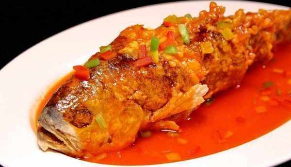 7.将煮好的糖醋汁浇在炸好的黄花鱼上