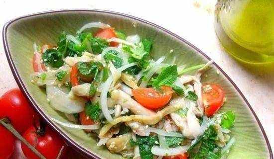 10.切小西红柿拌匀,加入两汤匙薄荷香油