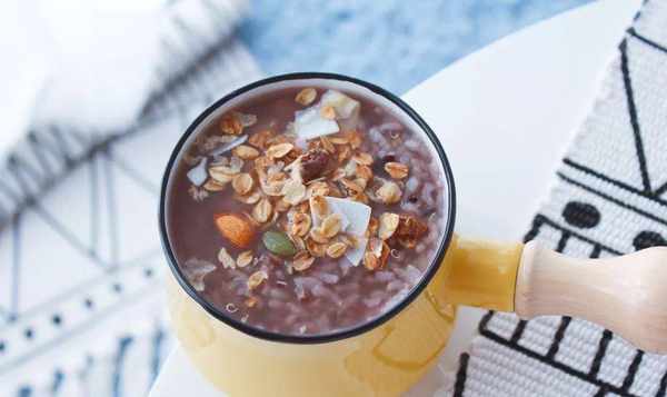 3.一起倒入电饭锅,点煮粥模式4.浓稠的藜麦糙米粥就做好了