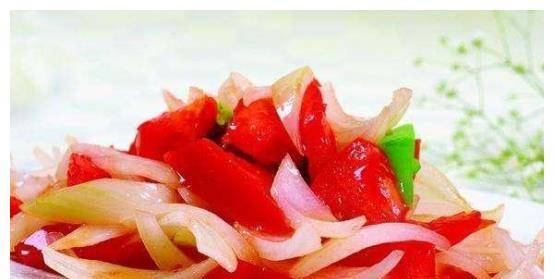 材料:洋葱、番茄、盐、糖、胡椒粉、醋、香油