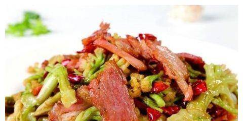 材料:培根、花菜、花椒、大蒜、红辣椒、蒜苗