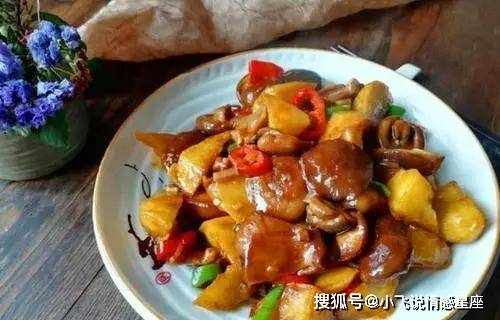 材料:香菇500克,土豆2个,尖椒2个,油、盐适量,葱1份,姜2片,蒜2瓣,酱油1汤匙,蚝油1汤匙,糖1/3汤匙,淀粉适量