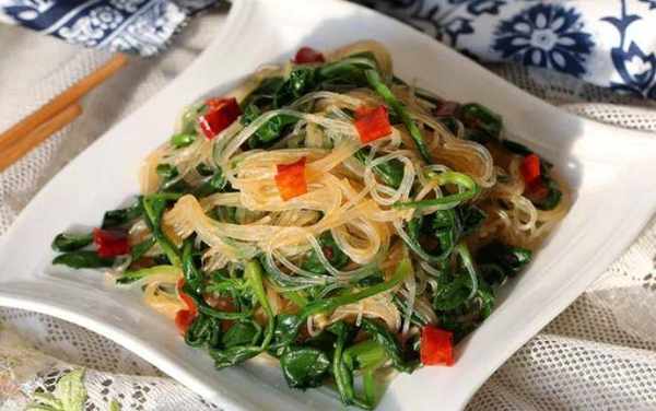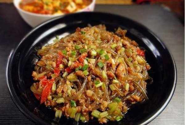 材料:香菜300克,粉条200克,肉末200克,辣椒粉1汤匙,蒜末1茶匙,姜末1茶匙,黄酒15毫升,酱油15毫升,糖1茶匙,盐1-2克,香油