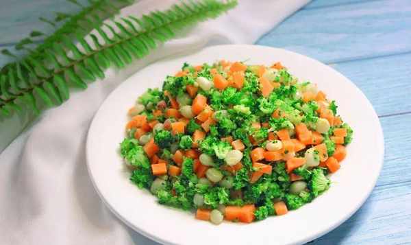 2、锅中烧开水,加盐,然后将西兰花、玉米粒和红薯焯水备用。