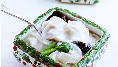 3.将馄饨皮裹上鸡肉馅做成馄饨,放入鸡汤中煮熟。