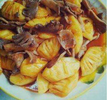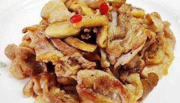 3、起油锅煸炒肉片,变色后盛出;用余油煸炒茶树菇和姬菇,加入少许盐和生抽调味,倒入肉片翻炒均匀即可。