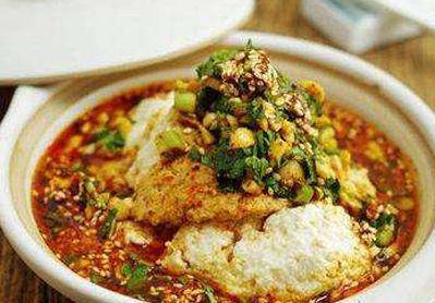 4、一小时后,放入鸡血块、面筋稍煮,然后加盐、味精、鸡精、胡椒粉调好味道,最后淋入少许藤椒油即可出锅装盘。
