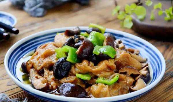 -材料-香菇40克、油面筋20个、青椒半个、生抽1汤匙、植物油适量、甜面酱1汤匙