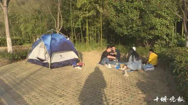 14日,记者在十堰西高速口看到,大片的草坪、青翠的绿植,吸引了不少市民搭帐篷、野餐,享受明媚春光。