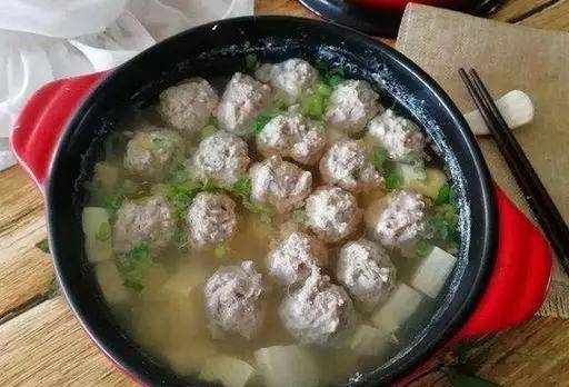 5.当丸子全部下入锅内后,开大火,将汤烧开,撇去浮沫,煮至丸子全部飘起来,加入盐调味,关火,加入白胡椒粉,香油,葱花,搅匀即可。