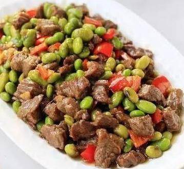 1.牛肉切粒,下食用油、盐、鸡粉、生粉腌起。毛豆剥壳,红辣椒去籽后切好。