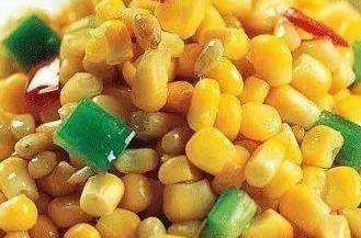 5、将蒸熟的玉米粒放入锅中,然后用松子炒半分钟左右,加少许盐。