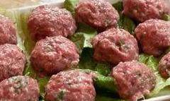 3、把香菜馅用手挤成丸子,做好后放入姜丝和胡椒粉;