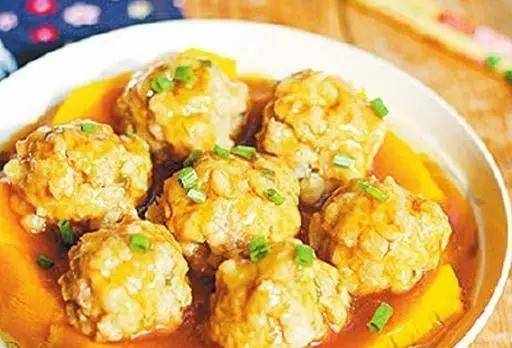 5、淋在肉丸上,最后撒上适量葱花即可。