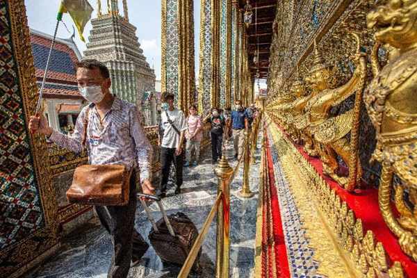 2月7日,中国旅游团游客在泰国曼谷大王宫景区游览。6日,泰国迎来中国试点恢复出境团队旅游业务的首批中国团队游客。新华社发