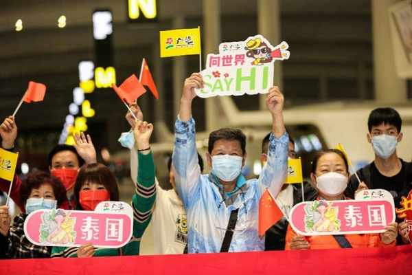 2月6日,广之旅国际旅行社的首个赴泰国旅游团在广州白云国际机场出发。 新华社发