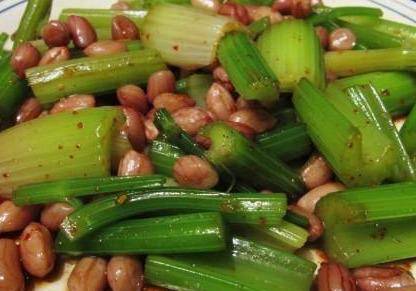 3、将腌制好的芹菜沥干,与煮好的花生拌匀;加入香油和酱油拌匀;