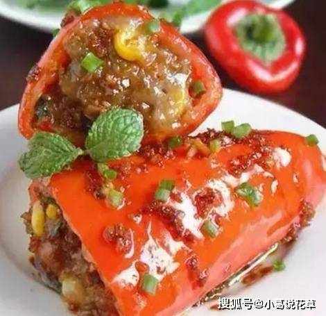 原料:牛腿肉200克,红灯笼椒6个,糯米250克,胡萝卜少许,玉米、葱、姜、蒜末。盐、香料粉、糖、料酒、生抽、水淀粉、胡椒粉、鲜汤