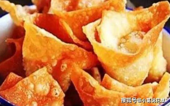 3、锅里加油,烧热,放入馄饨用小火炸至金黄色,捞出沥干油,食用时蘸上酱油和醋。