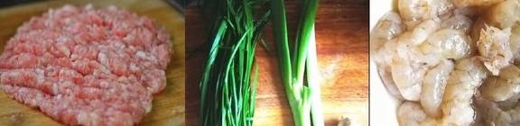 韭菜600克、面粉1000克、肉馅600克、虾仁300克、鸡蛋3个、葱2根、生姜1块、盐少许、老抽少许、香油半茶匙、糖10克、胡椒粉5克