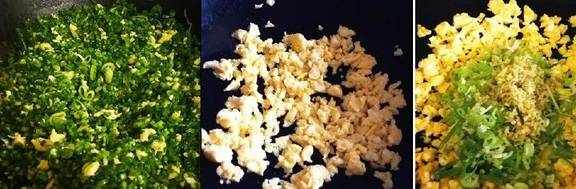 3、然后炒鸡蛋,炒熟用铲子剁碎,加葱末姜末;韭菜切碎,加香油少许,搅拌,这样韭菜不容易出水。韭菜和鸡蛋碎搅拌均匀。