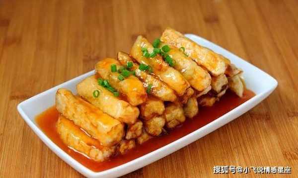2.锅中放油。油热后,放入豆腐块,用小火煎。尽量不要触摸;3、一边煎豆腐,一边把花椒和蒜切段,芹菜切段,两面煎至金黄,取出炸好的豆腐。