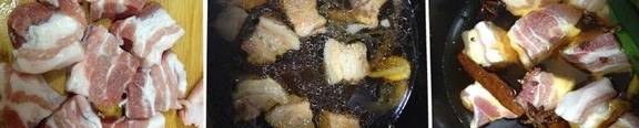 2、夹花肉洗净,去皮,切大块,放入高压锅,加葱姜、酱油和盐,大点的宝贝可以加少量陈皮、花椒和八角,用高压锅压直稀烂;