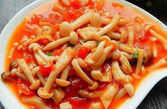 3、锅中放水,待水开后,将白玉菇放入锅中焯3分钟,捞出沥干。4、锅中油烧热,将白玉菇放入锅中翻炒,加少量酱油调味,再倒入小番茄翻炒。