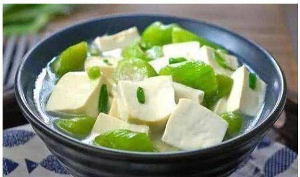 配料:豆腐250克,去皮丝瓜80克,药明,葱花,盐,鸡粉,陈醋,香油,老抽