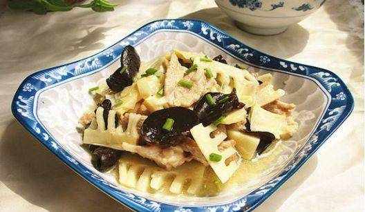 材料:冬笋250克,萝卜200克,黑蘑菇10克