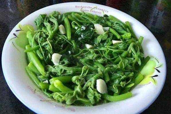 材料:南瓜藤、大蒜、盐、鸡精、油;