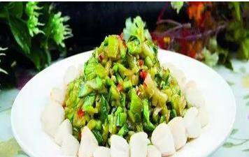 原料:韭菜300克,叶子2千片,红辣椒1个,盐适量;