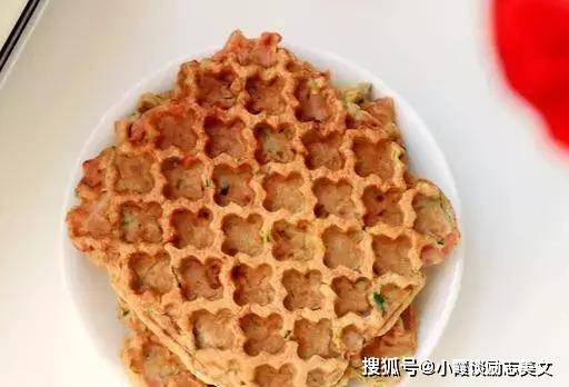 3.加入3勺黑麦粉,和成厚面团。润滑华夫饼华夫饼并在上面涂上一勺面糊。