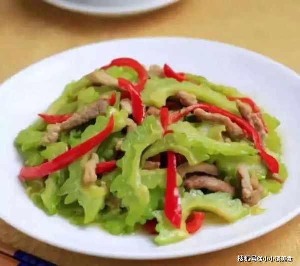 原料:猪里脊肉、苦瓜、大蒜、盐。