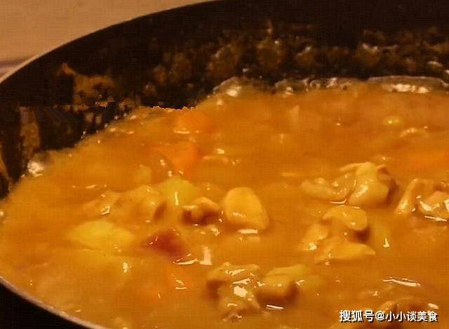 4.加入1片咖喱,加少许椰浆和少许盐,小火煮5分钟即可出锅。