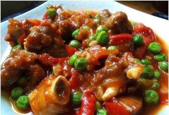 配料表:排骨、豌豆、大蒜、洋葱、姜、盐、醋、酱油、蚝油、番茄酱、糖、白酒、油