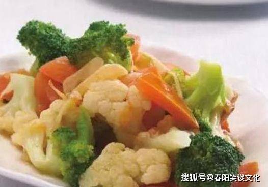 原料:花菜200克,西兰花150克,西红柿1个,盐、蒜、葱、姜、鸡肉、色拉油适量。