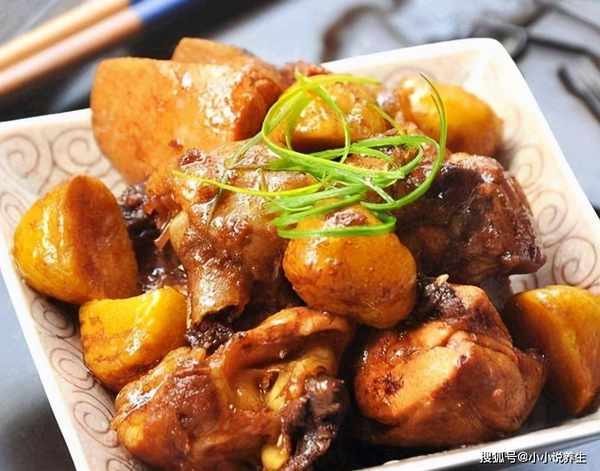 原料:鸡骨头500克,板栗15-20克,生姜、大蒜。