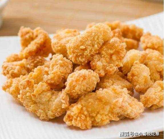 5、锅里放油烧热,放入爆米花鸡用中火煎至爆米花鸡呈金黄色,捞出检查油。