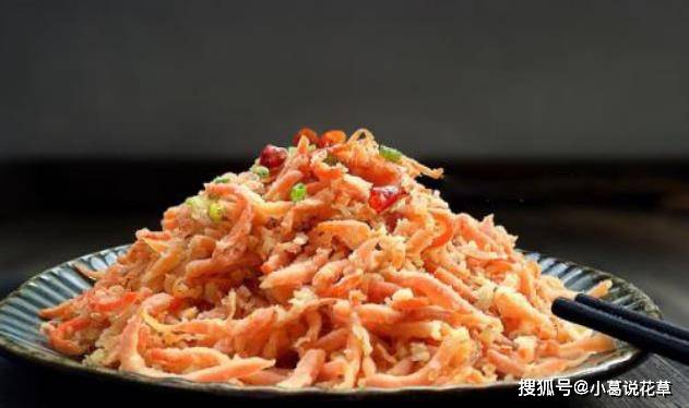 1、胡萝卜用削皮器撕成细丝,用盐水浸泡10分钟左右;