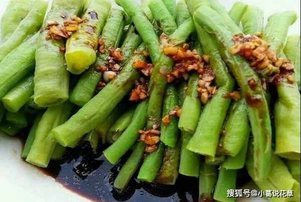 原料:豇豆适量、大蒜适量、香葱适量、小米椒适量、香油适量、香醋适量、盐适量