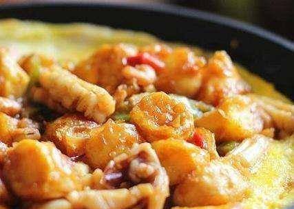 迅速将煮熟的海鲜豆腐浇在鸡蛋上,就完成了。