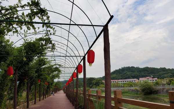 走进村庄,在路旁边有着一口诺大的荷花塘,遗憾的是并没有赶上荷花盛开的时节,留给游客的只剩零星的荷花。外围并没过多值得一提的景点,走在瓜果长廊体验农家风情、拍上一组田园风照片、爬上观景平台一览全村样貌。