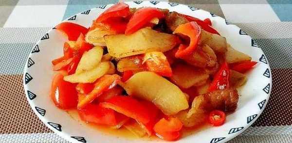 材料:冬瓜500克,鸡精5克,白糖10克,蚝油10毫升,料酒10毫升,盐3克,姜1小块,红白菜椒1条,葱1条。