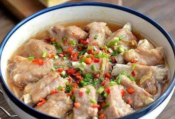 6、排骨放入蒸锅,大火蒸20分钟,出锅时撒上红辣椒粉和小葱。
